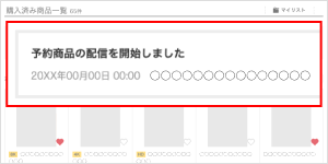 予約商品を購入すると「購入済み商品一覧」ページで配信開始日時が表示されます。