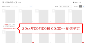 表示されている配信開始日に該当作品の視聴ができるようになり「購入済み商品一覧」ページ上部の「配信開始のお知らせ」に該当作品が表示されます。
