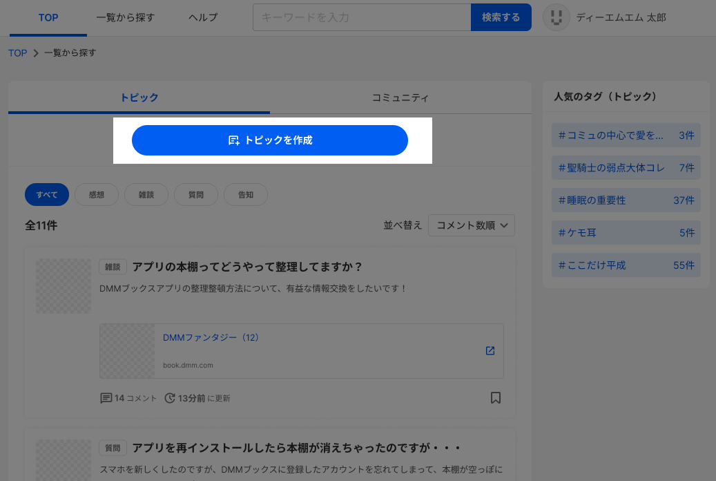 TOP > 一覧から探す > トピックを作成ボタンを押す